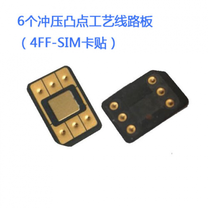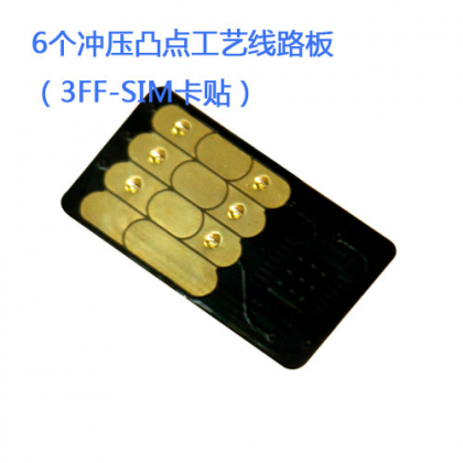 基于常規(guī)柔性線路板制造工藝,沉金表面工藝之上沖壓6個高度均勻,有一定抗壓強度的凸點,應用于2FF-SIM卡貼,可植入SI...